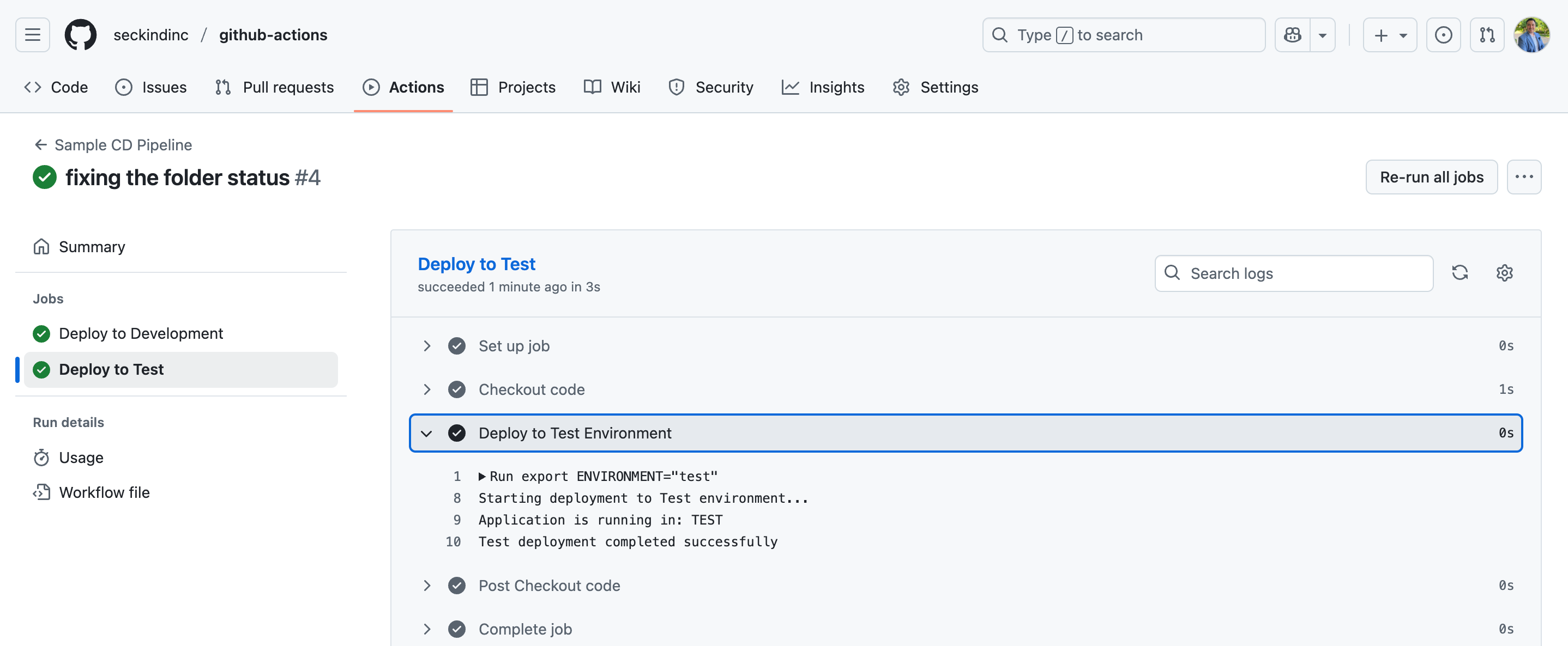 - name: Deploy to Test Environment